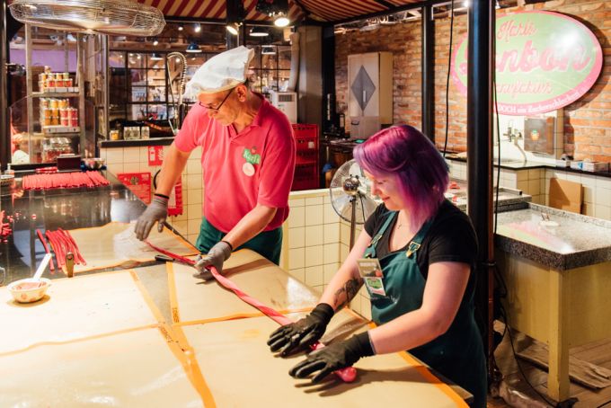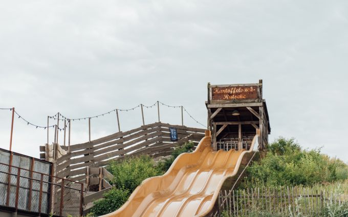 „Mit fremden Erdbeeren arbeiten wir nicht!“, sagt uns der PR-Leiter des Hofes in Berlin, während er uns über das Gelände führt und wir aus dem Staunen nicht mehr rauskommen. Ich möchte mich nicht nur am liebsten einmal komplett durch das gesamte Lebensmittelsortiment in dem riesigen backsteinernen Laden futtern („Alles selbstgemacht!“), sondern mich auch auf allen Attraktionen, die eigentlich für Kinder gedacht sind, austoben. Es gibt eine Riesenschaukel, Hüpfkissen, einen Irrgarten, Rutschen, eine Kletterwelt, eine Traktorbahn, eine Schatzhöhle, sogar eine Eiswelt, noch bis Ende August eine Riesenwasserrutsche und ab dem 14. Juli 2017 sogar ein Maislabyrinth. Wer hier auch als Erwachsener keinen Spaß hat, der hat wohl generell keinen Spaß im Leben.