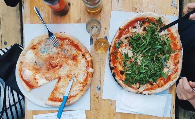 Pizza gehört auf jeden Fall in diese Liste. Die hauchdünnen oder fluffigen Pizzen machen uns einfach glücklich, basta. Besonders an verregneten Sonntagen freuen wir uns, wenn der Pizzabote an der Tür klingelt und wir uns mit unserer Freundin namens Margherita auf die Couch fläzen. Und im Sommer mit Freunden, Wein und Pizza draußen sitzen ist sowieso unschlagbar.