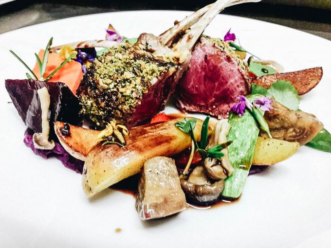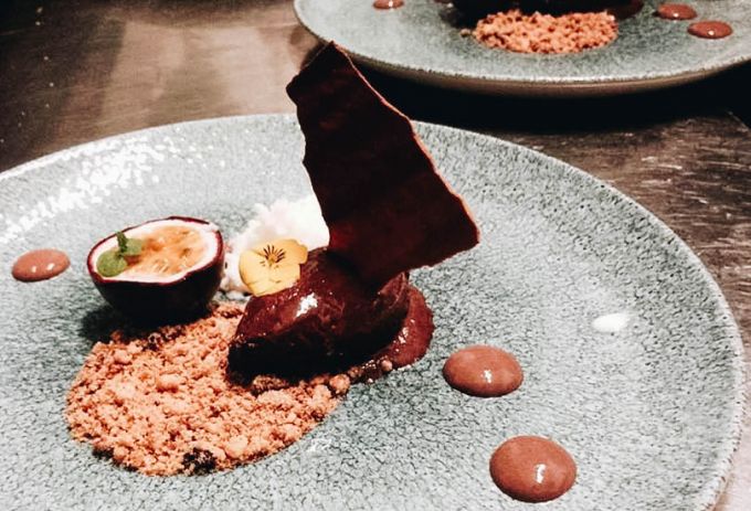 Ein Teller nach dem anderen verlässt die Küche und wird von uns bestaunt. Getrüffelte Mais-Safran-Suppe, Lammkarree mit Kräuterkruste und Rotweinreduktion, Rinderbäckchen auf Sellerie-Püree. Wir lernen, dass Knurrhahn eigentlich im Meer schwimmt und keine Federn hat. Und köstlich zu Orangen-Ingwer-Karotten-Püree passt. Das mehrgängige Menü wird schließlich mit Apfel-Crumble in schaumiger Vanillesoße und einer Mousse aus edler Zartbitterschokolade abgerundet. Ein Drink aus Rum, Walnusslikör und kaltem Espresso ergänzt den Nachtisch. Ein Hoch auf den Dessertmagen!