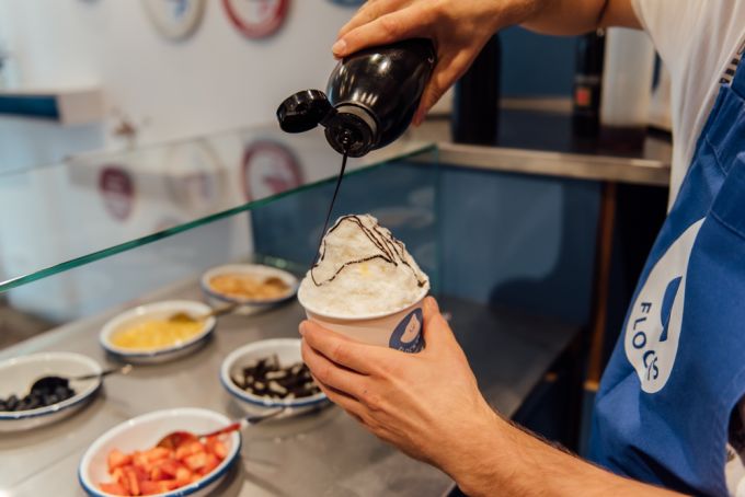 Fluffiges Schnee-Eis bechern bei Flockys in Friedrichshain