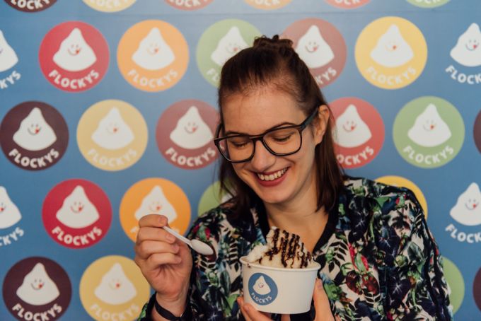 Das Besondere an dem Eis von Flockys ist seine Konsistenz. Es fühlt sich wie richtiger Schnee auf der Zunge an und wenn es schmilzt, hinterlässt es einen grandiosen Geschmack – lecker! Die Idee rund um Flockys kam Andreas vor acht Jahren bei einem Besuch in Asien. Dort gab es ein ähnliches Eis, aber mit viel mehr Zucker und einem eher künstlichen Geschmack. Andreas nutze dies als Ansporn und feilte über drei Jahre an der perfekten Rezeptur für sein Schneeeis.