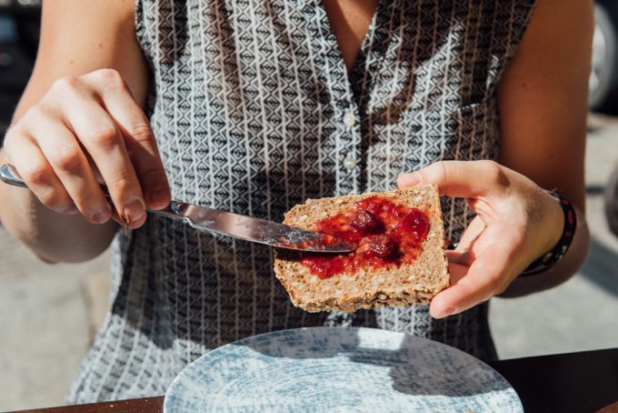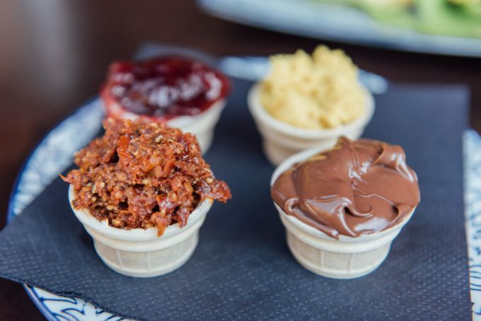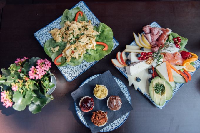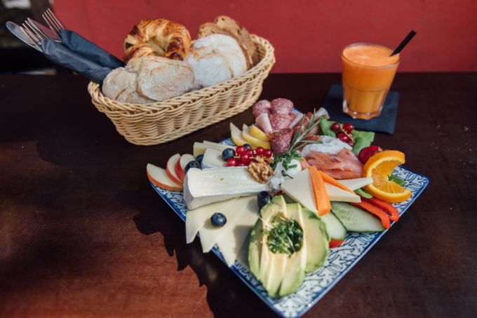 Zum Frühstück bekomme ich die Frühstücksplatte "Frühstück zu Zweit". Sie ist prall gefüllt mit allem, was mein Herz begehrt: Camenbert, Lachs, Avocado, Obst und Gemüse. Dazu gibt es einen Brotkorb und hausgemachte Dips wie Hummus und Pesto, Orangensaft oder auch ein Gläschen Sekt. "Das Zebrano soll ein Ort für jeden sein. Egal welche Hautfarbe, Geschlecht oder Orientierung!", verrät mir Danjel.