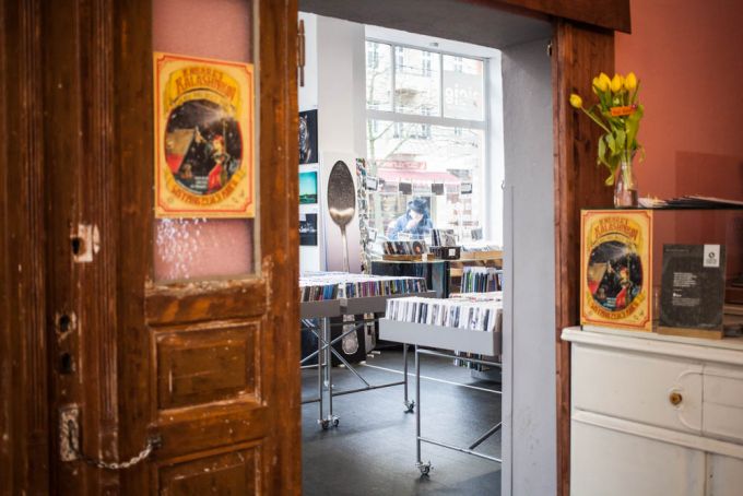 "Alles in unserem Laden kannst du kaufen", erzählt Paul, "sogar den Teller, auf dem du deinen Kuchen isst. Nur die Vintage-Holzschiebetür, die Thekenmöbel und den Kronleuchter geben wir nicht wieder her". Das kann ich nur zu gut verstehen, die passen wirklich gut hier rein.