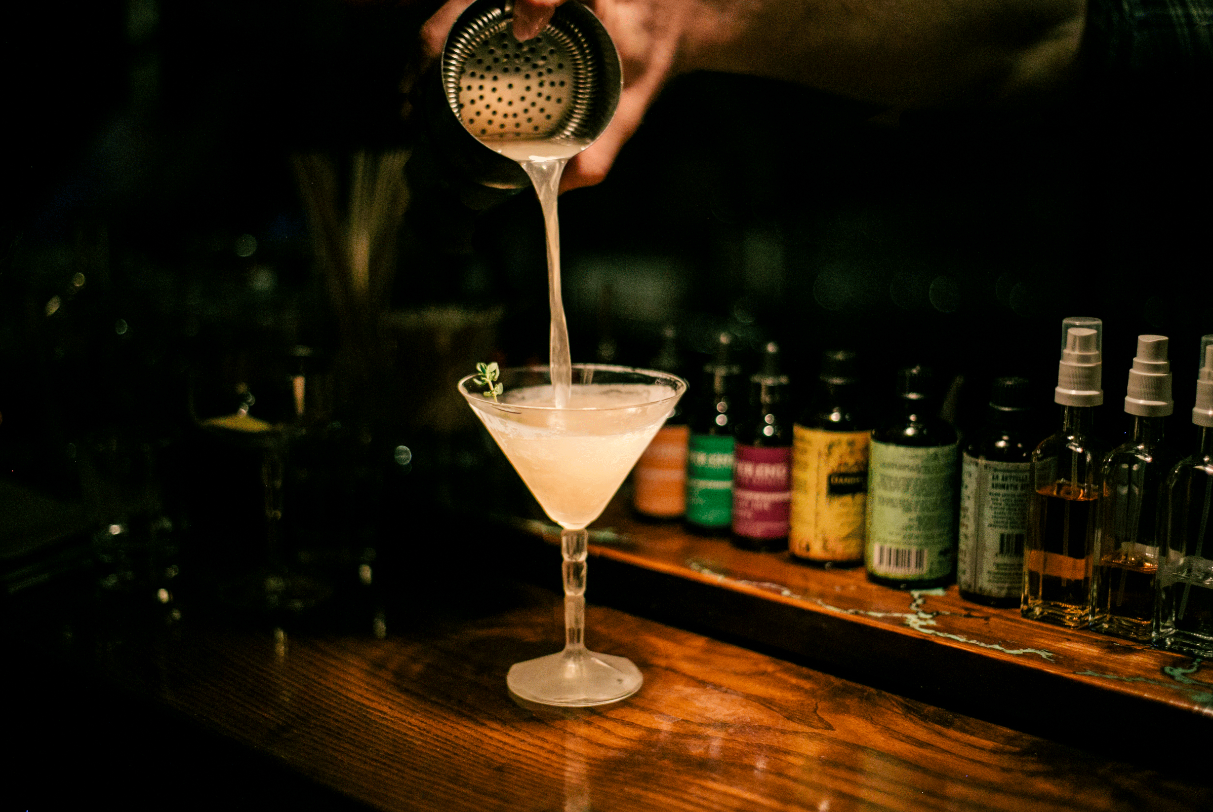 In Berlin gab es bisher keine Bar, die sich komplett Drinks auf Kräuterbasis widmet. Ein ähnliches Konzept kennt man höchstens aus New York, aus der Apotheke. Bevor Peter seine eigene Bar eröffnete, arbeitete er fünf Jahre im Tier in der Weserstraße, den Traum vom eigenen Laden im Hinterkopf. Dass er sich auf Drinks mit Heilkräutern spezialisiert hat, ergab sich zufällig. Im Garten seines Hauses in Brandenburg begann er mit verschiedenen Pflanzen und deren Geschmäckern zu experimentieren, entdecke immer neue Sorten. Dabei interessierte ihn auch, welche heilenden Wirkungen die Kräuter haben – und wie er sie sie in Drinks unterbringen könnte. Als Sirups oder auch frisch mischt er mit ihnen seine ganz eigenen Cocktailkreationen.
