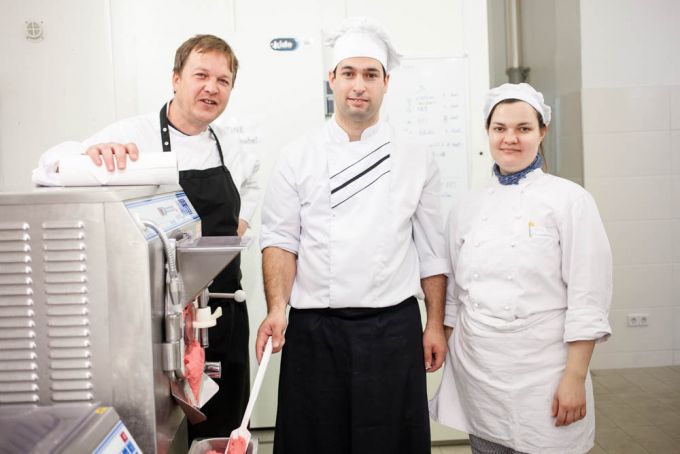 "Viele Gäste probieren unser Eis und sagen, es sei ja gar nicht so süß wie woanders", erzählt Friederike und erklärt mir, dass das tatsächlich an dem geringer Zuckergehalt im Eis liegt. Der liegt in der Regel bei 17-18 Prozent. Find ich gut, die verwendeten Früchte haben ja schon eine gewisse Süße und bei zu viel Zucker schmeckt man am Ende gar nicht mehr die einzelnen Geschmacksnoten. Wer an einer Kugel Rhabarber-Eis oder Vanilleeis von Rosa Canina schleckt, der schmeckt die süß-säuerliche Frucht und das natürliche Aroma, weil hier an sich auch nichts anderes drin ist.