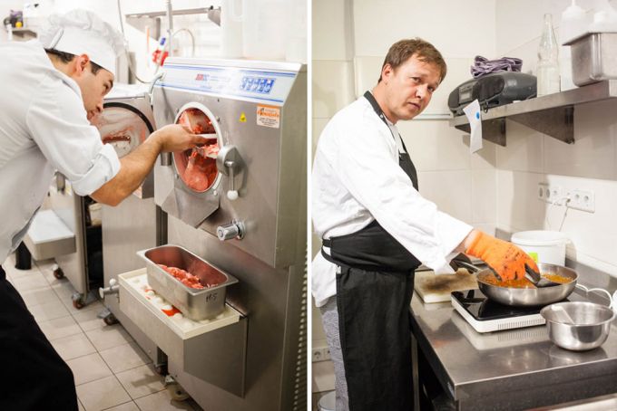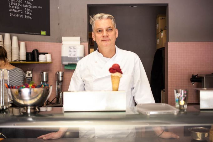 Nach der Arbeit kommt ja bekanntlich das Vergnügen, also geht's aus der Produktionsküche nach vorne in den Laden, wo Reimar mit Eislöffel bewaffnet auf uns wartet. Während ich mich durch die vielen Sorten probiere erzähl er mir, wie er 2008 mit zehn Sorten Eis in dem ersten Rosa Canina-Laden um die Ecke in der Pasteurstraße angefangen hat. Vormittags stand er alleine in der Küche und hat das Eis gemacht, das er am Nachmittag verkauft hat. Eine One-Man-Show, die bei den Nachbarn und Eisliebhabern gut ankam. Aus einem Landen wurden schnell zwei, dann drei. Mittlerweile gibt's sogar eine Eisdiele in Frankfurt. Seit kurzem könnt ihr auch im BRLO Brwhouse am Gleisdreieckpark von dem leckeren Berliner Bio-Eis naschen.