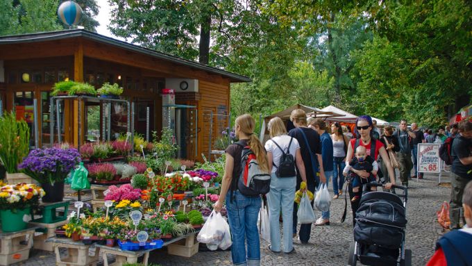 Klar müsst ihr euren Kiez nicht zum Einkaufen verlassen, aber den Wochenmarkt auf dem Winterfeldtplatz in Schöneberg, der größte Markt in Berlin, kann man trotzdem zum Ausflugsziel erklären. Denn hier könnt ihr nicht nur hübsche Blumen und Alltägliches für die heimische Küche einkaufen, sondern auch ganz faul und bequem den ganzen Tag futtern. Besonders empfehlen können wir euch die Churros, den Maultaschen-Burger von Teig & Füllung und die gegrillte Makrele vom Fischgriller Jürgen Fürgut.