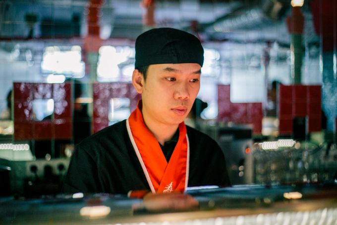 Dem vegetarischen Sushi haben Inhaber Axel und Afon besondere Aufmerksamkeit gewidmet und sich an eine neue Rezeptur gewagt. Hier schmiegt sich die Füllung an roten Himalaya-Reis, der etwas reichhaltiger und körniger als klassischer Sushi-Reis schmeckt. "Wir haben auch mit Quinoa experimentiert, aber das war doch zu bröslig", erzählt uns Geschäftsführer Axel. Und wäre – Mitte-Standort hin oder her – vielleicht auch zu viel des Guten gewesen.