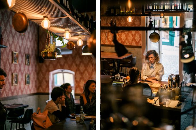 Dabei will sich das Night Kitchen weder komplett als Restaurant, noch als Bar verstehen. Hier geht es um beides – ein "Gastropub" eben, auch wenn das Wort so viel unfeiner klingt, als es ist. Die Besitzer, Gilad Heimann und Shaul Margulies, haben die ehemaligen Räume des Vorgängers Ross komplett umgestaltet. Eine orientalisch angehauchte Wohnzimmertapete, viele kleine Lampen, eine offene Küche und mittendrin: die rustikale Bar. Das Licht ist gedämmt, die Musik rauscht im Hintergrund, Stimmengewirr liegt in der Luft. Hier sitzen die Gäste Schulter an Schulter, gemeinsam, aber dennoch jeder für sich.