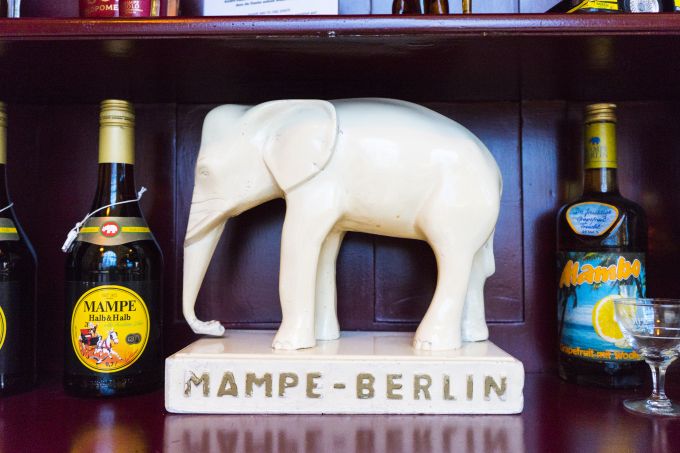 Nach drei, vier Gläsern hat er ordentlich einen im Rüssel! Nein, Mampe war Sponsor des Berliner Zoos. Im Jahr 1926 kam ein afrikanischer Zwergelefant in den Zoo, der den Namen seines Sponsors bekam. Damals eine Sensation, verband der Berliner sehr schnell Mampe mit dem Elefanten im Zoo. So wurde der Elefant nicht nur Markenzeichen, sondern hing und hängt heute an jeder Flasche Mampe.