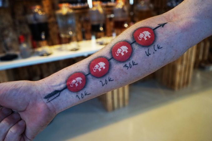 Du hast den Verlauf Deiner Crowdfunding-Kampagne auf den Arm tätowiert. Ist das eine verlorenen Wette, entstanden während einer Verköstigung von Mampe?