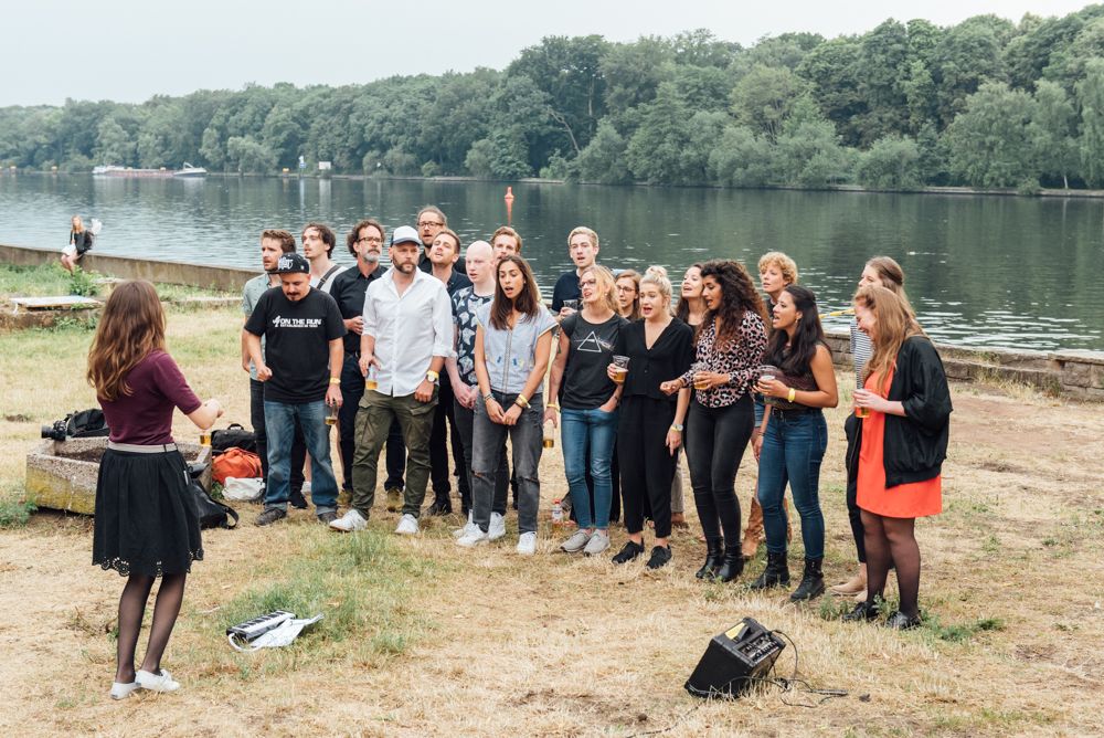 Nanu, da steht ja ein Berliner Kneipenchor an der Spree.