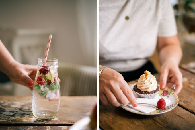 Der gemütliche Laden in der Schreinerstraße erstrahlt in viel Detailliebe. Alte Holztische, rustikale Stühle, freihängende Glühbirnen. Das aktuelle Törtchenangebot fällt sofort ins Auge. Kleine Küchlein stehen unter Glasglocken auf Podesten, Mini-Torten leuchten in der Vitrine. Ziegenkäse-Cheesecake, Nektrarine-Aprikosen-Baiser und Holunder-Limetten-Törtchen schmiegen sich aneinander. Eine Kreation hübscher als die nächste. „Eigentlich wollten wir hier nur einen Showroom für unsere Hochzeitstoren einrichten“, berichtet Besitzerin Johanna. „Aber letztlich waren die Leute im Kiez doch so interessiert und daran gewöhnt, dass es hier ein Café gibt, dass wir uns dafür entschieden haben“.