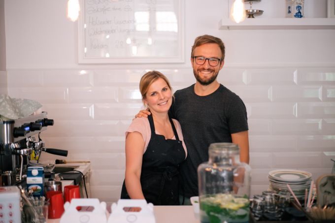 Wenn nicht gerade der Hochsommer die Luft erhitzt, präsentieren Johanna und Christian die Hochzeitstorten auch im Café. Die Nachfrage danach ist riesig. Berlin ist kräftig dabei, sich zu vermählen, schon ein bis ein Dreivierteljahr vorher sind die beiden ausgebucht. Das hätte sie so auch nicht erwartet, sagt Johanna. Aktueller Tortentrend: wenig Schnickschnack und essbare Blüten. „Das passt am besten zu den ganzen Hochzeiten in Scheunen oder am Wasser“, meint Christian.