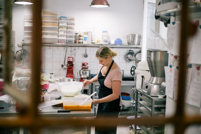 Obwohl das Café nur drei Tage die Woche geöffnet hat, ist immer viel los. Vor allem Anwohner kommen regelmäßig vorbei. Zu den eher ungewöhnlichen Törtchenkreationen im Laden gesellt sich übrigens auch immer ein klassischer Streuselkuchen oder Ähnliches, erklärt Johanna. „Die Leute essen den gern, das hat ja auch etwas Nostalgisches an sich“. Die Rezepte hat sie sich natürlich alle selbst ausgedacht, gebacken wird im hinteren Teil des Ladens.