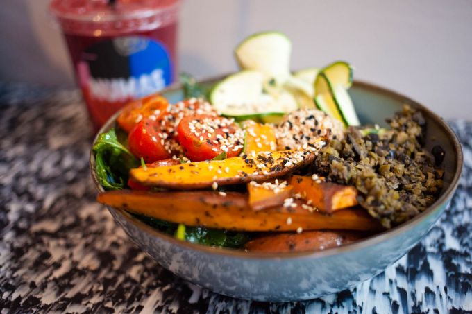 Veggie: Auf der Karte stehen Superfoods, Obst und Gemüse, Fleisch gibt es nur ab und zu.