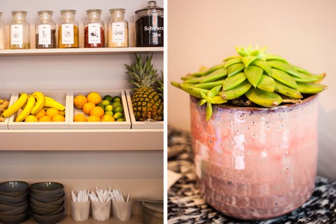 Die Idee, ein Café mit ausschließlich gesundem Essen zu eröffnen, kam während eines Urlaubs in L.A. und Las Vegas, erzählt mir Sermin, die Store-Managerin vom Numas. "Healthy eating" ist schließlich nicht nur in den USA einer der großen Foodtrends, sondern auch bei uns mehr als angesagt. Eigentlich betreibt sie gemeinsam mit ihrer Geschäftspartnerin einen Beauty-Salon in Charlottenburg, nun mischen die Frauen auch im Food-Business mit. Eine gesunde und bewusste Ernährung gehört ja irgendwie zum Schönsein dazu, es heißt ja nicht ohne Grund "Du bist, was du isst" und im Numas sind das eben jede Menge Vitamine in Form von Algen, Samen, Pulver und Beeren.