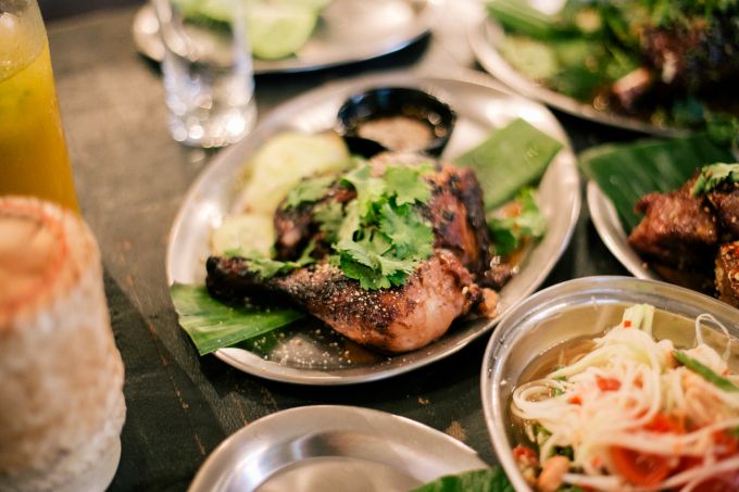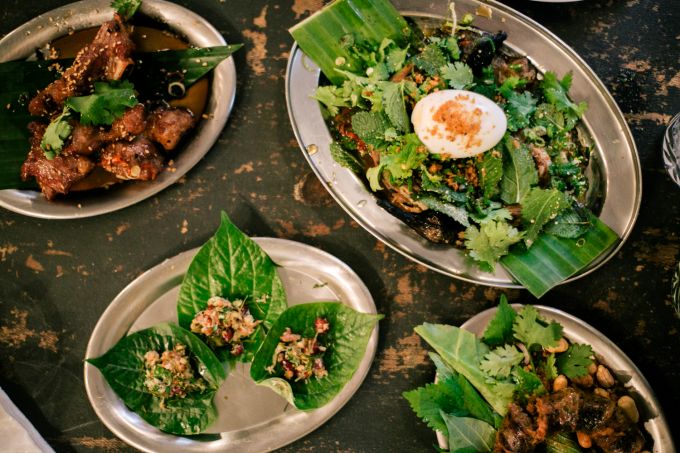 Um Futterneid zu vermeiden, solltet ihr Zeit mitbringen und das "Full Banquet Menu" bestellen. Dabei bekommt ihr das gesamte Menü. Jedes der Gerichte ist darauf ausgelegt, geteilt zu werden, auch wenn man die super zarte Lammhaxe mit Honig und Koriander gerne aufs Blut verteidigen und für sich behalten würde. Mit den passenden Cocktails (sehr zu empfehlen der Grasoon Nuah mit Bourbon, der perfekt zu den Grillaromen passt) könnt ihr euch dann auch gleich den Ausflug in den Club sparen, das Underground-Club-Gefühl wird praktischerweise direkt mit den fermentierten Spare Ribs serviert.