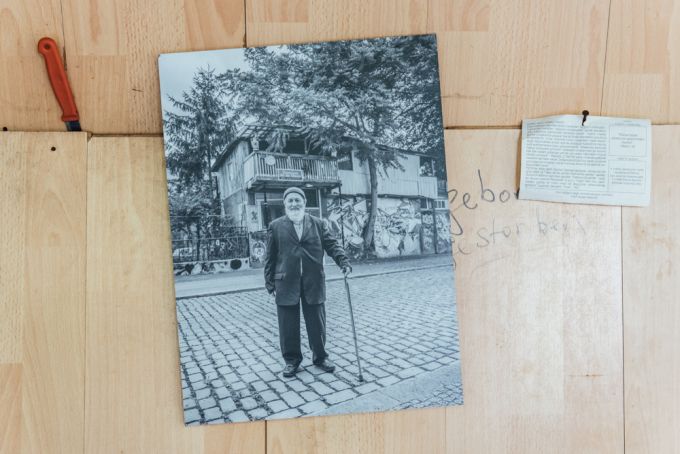 Als 1989 die Mauer fiel, fing Osman an eine Hütte zu bauen und irgendwann entstand daraus dieses zweistöckige Haus mit Betonfundament. Bis 1994 hat es gedauert, bis sich jemand fragte, wer eigentlich dieser Osman ist und wem dieses Stück Land gehört. Durch viel Glück und gute Kontakte zur naheliegenden St. Thomas Kirche bekam er eine Sondergenehmigung für sein kleines Niemandsland. "Wir haben hier keinen Strom, keinen Abfluss und kein Trinkwasser. Das einzig Legale, wenn man es sehr sehr streng nimmt, ist diese Pumpe im Garten, die ich 2008 gebaut habe, um damit den Garten zu bewässern. Für die habe ich einen Genehmigung."