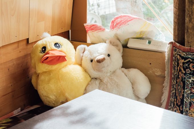 Als ich beim Baumhaus ankomme, sitzt Osman Kalin in einem Plastikstuhl in seinem Garten. Stolz lächelt er und winkt mir zu. Da er kein Deutsch spricht und ich kein Türkisch, bleibt unsere Konversation im Zaun stecken und reduziert sich auf Lächeln und fotografieren.