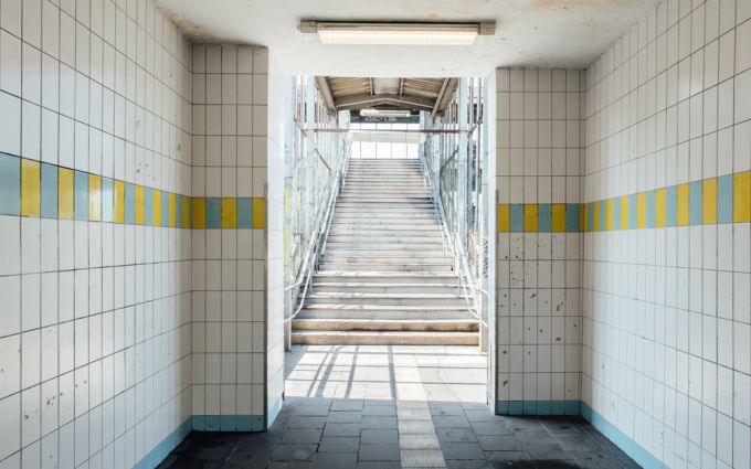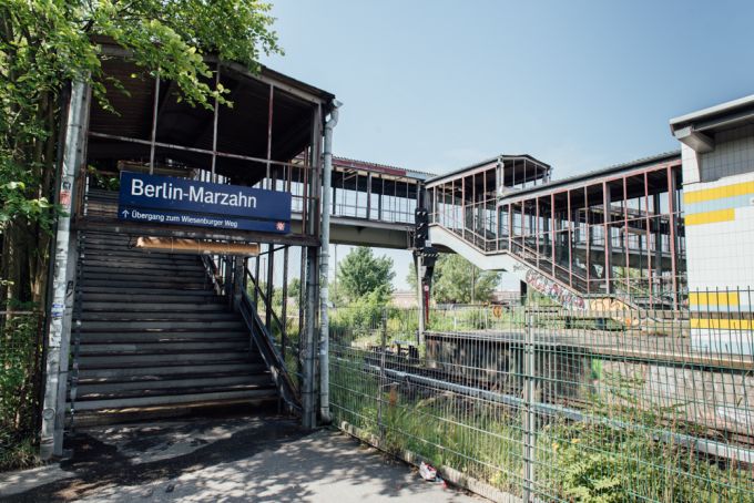 Ich starte an der Warschauer Brücke und fahre mit der S7 schnelle 16 Minuten bis nach Marzahn. Das ging ja flott. Ich laufe die Treppen von der S-Bahn hoch und bin gleich fasziniert von dem S-Bahn Übergang. Alt und verrostet ist das Gitter, undicht das Dach, aber es hat Charme.