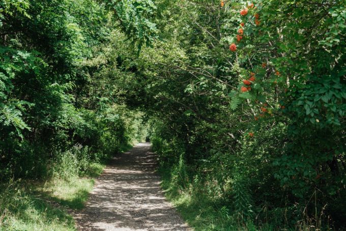 Es gibt einen geschotterten Weg hinauf oder einen über Stock und Stein und mitten ins Gebüsch. Letzeres hab natürlich ich gewählt und wurde schon fast zum Umkehren gebracht, als mir die Brennnesseln zu Kopfe stiegen.