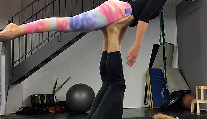 Nicht Aggro-, sondern Acro. Acro-Yoga ist eine Mischung aus Turnen, Tanzen, Partnerakrobatik (man muss aber nicht zwingend mit einem kommen) und Yoga. Kurse kannst Du z.B. bei Chimosa in Berlin Mitte finden. Das Wort "Acro" stammt aus dem Griechischen und bedeutet "hoch". In diesem Kurs lernst Du wortwörtlich fliegen wie bei Dirty Dancing. Um Acro Yoga auszuführen, brauchst Du mindestens einen Buddy. Beim Fliegen lässt die eine Person bzw. „Base“ die zweite Person (Flyer) „fliegen“. Viel Spaß beim Abheben! Das sieht nicht nur unglaublich schön aus, sondern macht im Doppelpack auch gleich doppelt so viel Spaß!