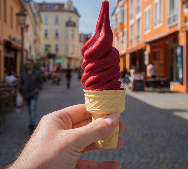 Bei Natur Eis in Friedrichshain geht's ganz schön bunt und auf Wunsch auch zuckerfrei zu. Die glutenfreien Waffeln gibt es in verschiedenen Farben, die Kugeln werden mit knalligen Streuseln, Mini-Marshmallows und Sahne verziert. Wer mag, bekommt auch ein Spaghettieis serviert. Die Sorten wie Salty Caramel, Popcorn oder Sanddorn schmecken aber auch pur super.