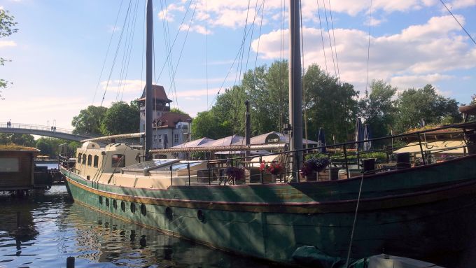 Der über hundert Jahre alte Zweimaster sticht zwar nicht mehr in See, macht sich aber auch als schwimmendes Restaurant sehr gut. Zwischen Treptower Park und Plänterwald liegt der Klipper fest verankert in der Spree. Die wunderbare Aussicht kann man nicht nur aus dem Schiffsinnenraum sondern auch von einer Wasserterrasse und einem Seepavillon aus genießen. Serviert wird hier hauptsächlich Fisch aus dem eigenen Räucherofen, aber auch einige Fleisch- und vegetarische Gerichte finden sich auf der Speisekarte. Ganz günstig ist es zwar nicht, aber mit der Aussicht definitiv lohnenswert.