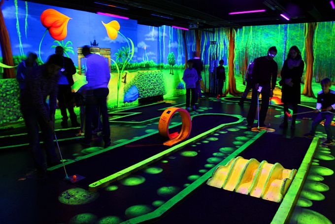 Schwarzlicht-Minigolfen bietet die perfekten Verhältnisse, um gepflegt zu trinken, sich zu unterhalten, nebenher locker den Golfschläger zu schwingen (und seine weißen Zähne vorzuführen). Da es sich um eine Indoor-Anlage handelt, könnt ihr zu fast jeder Tag- und Nachtzeit spielen, auf Anfrage sogar außerhalb der Öffnungszeiten. Für Geburtstage gibt es sogar spezielle Angebote.