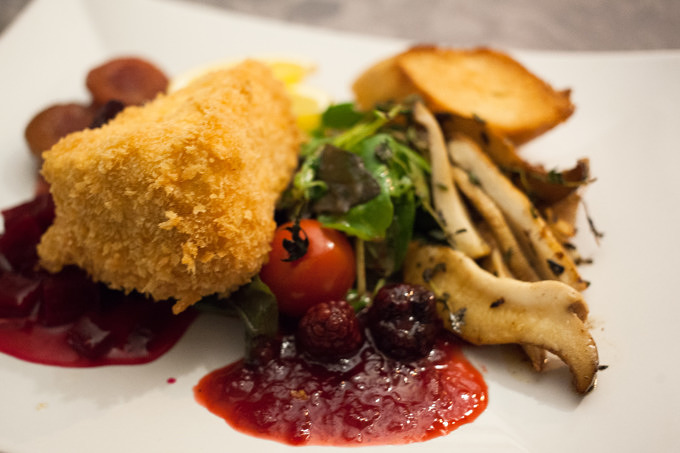 Höchste Zeit, ins Haus zu gehen, wo mich nicht nur ein schönes Appartement, sondern auch das Abendessen erwartet. Da die Fahrt ziemlich hungrig gemacht habe, wähle ich sowohl Vor- als auch Hauptspeise. Auf einen knusprigen Camembert mit allerlei süßen und herzhaften Beilagen folgt frischer Fang aus dem Wurlsee, den der Fischer während des Tages aus dem Gewässer gezogen hat und der gemeinsam mit Waldpilzen, Bratkartoffeln und jeder Menge saisonalem Gemüse auf dem Teller landet. Das ist Regionalität, wie man sie sich auch in Berlin öfter wünscht. Zumal alles wunderbar aromatisch schmeckt und ich mich zufrieden und satt ins Bett fallen lassen kann.