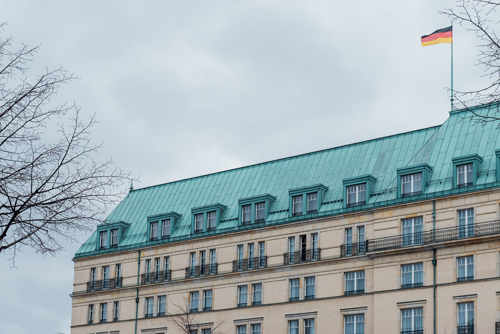Freitag, 02.02., 13.42 Uhr – Unter den Linden, Mitte: Die Fahne des Hotels Adlon weht stabil. © Kerstin Musl