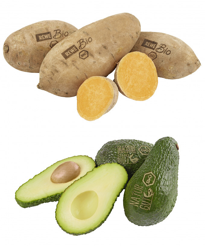 Seit über einem Jahr liegen Rewe-Märkten deutschlandweit die "tätowierten" Bio-Süßkartoffeln und Avocados im Regal, die komplett ohne Plastikverpackung auskommen. Die Produkte sind genau so lange halbbar und stehen auch geschmacklich den Produkten in der Plastikverpackung in nichts nach. Im Gegensatz zu Tattoos, bei denen die Farbe in die Haut eindringt und diese quasi verletzt, hat das "natural branding" für die Lebensmittel keinerlei schädliche Auswirkung – man kann es sogar mitessen. Das natürliche "Labeling" wird mit einem gebündelten Lichtstrahl in die oberste Schicht der Haut gebrannt, dabei werden Pigmente der äußersten Schalenschicht abgetragen. That's it.