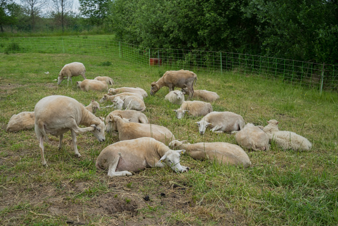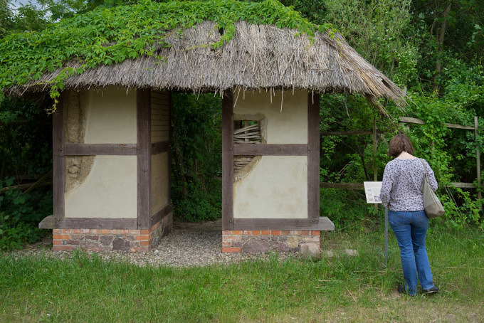 Naturliebhaber sollten gleich durchlaufen und das Areal erkunden. An der einen Ecke warten Wildblumen, an der nächsten sonnen sich brandenburgische Sumpfschildkrötren am Ufer, am Himmel zieht ein Seeadler seine Kreise und zwischen den Pflanzen tauchen immer wieder kleine blaue Libellen auf. Daneben gibt es Schafe, jede Menge Insekten und eine Katze tigert auch über das Gelände.