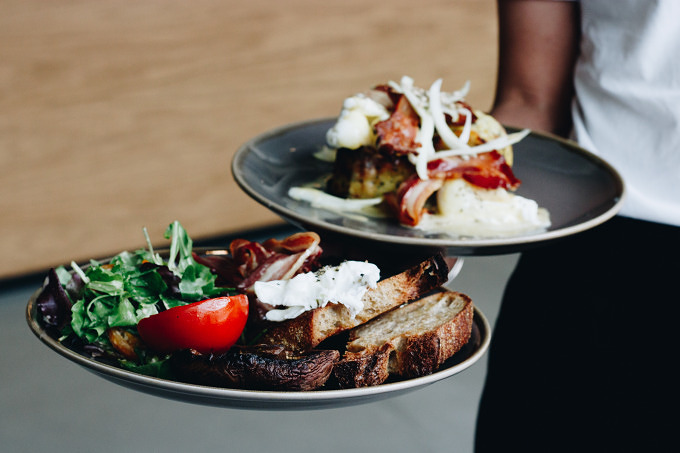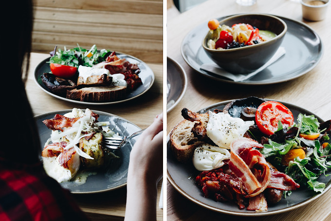 Der Kaffee schmeckt, wie in den anderen 19grams, hervorragend und vertreibt selbst das letzte bisschen Schlaf. Gegen den Hunger bestellen wir den veganen Chia Pudding, Eggs Benedict mit Bacon und das Bloody Good Breakfast. Das Sauerteigbrot bezieht das 19grams von Albatross – meinem Favoriten in Sachen Gebäck – und die Würsten vom The Sausage Man Never Sleeps.