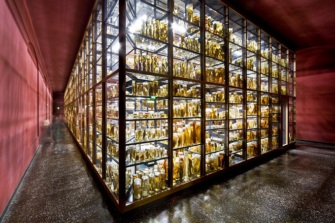 Das soll sich ändern. Seit einigen Jahren arbeitet das Naturkundemuseum daran, durch bauliche Anpassungen weitere Säle für die Öffentlichkeit freizugeben und seine umfangreiche Sammlung zugleich angemessen zu konservieren. Wie das Ergebnis aussieht, könnt ihr schon heute am Beispiel der Nass-Sammlung sehen, die rund eine Million Objekte in insgesamt 80 Tonnen Alkohol umfasst.