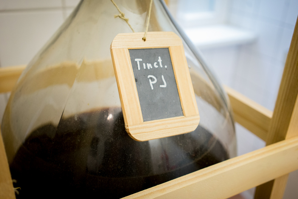 Wenn wir Mazerate ansetzen, dann etwas runzelig, weil das Reinigen der Apparaturen und Gefäße die meiste Zeit in Anspruch nimmt.