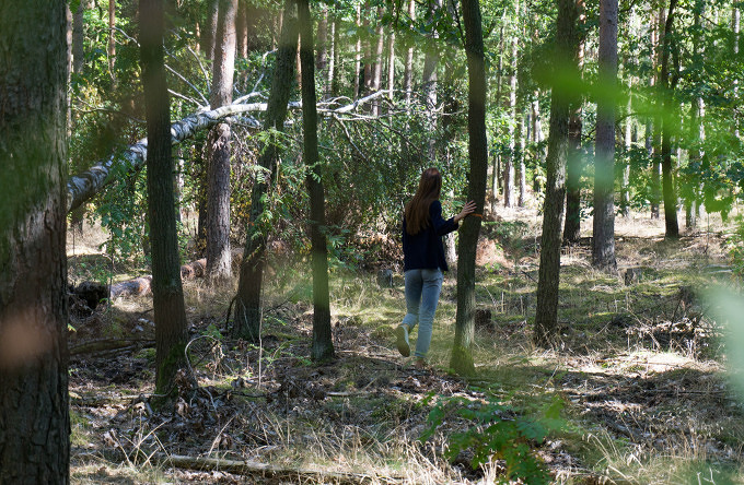 Mitten im Düppeler Forst bei Berlin treffe ich die Bademeisterin des Waldes. Das ist erstmal verwunderlich, denn Lia Braun geht gar nicht in einem Waldbach oder im nahegelegenen Wannsee baden. Stattdessen taucht sie tief in die Atmosphäre des Waldes ein. Die studierte Psychologin arbeitet als zertifizierte Forest Therapy Guide und praktiziert den japanischen Trend Shinrin Yoku, oder kurz Wald(luft)baden. Aber was bedeutet das? Springt sie ins Laub oder "badet" im Moos? Ich hab' mich zu einem Einführungskurs im Waldbaden angemeldet, um zu erfahren, was hinter dem aktuellen Hype steckt.
