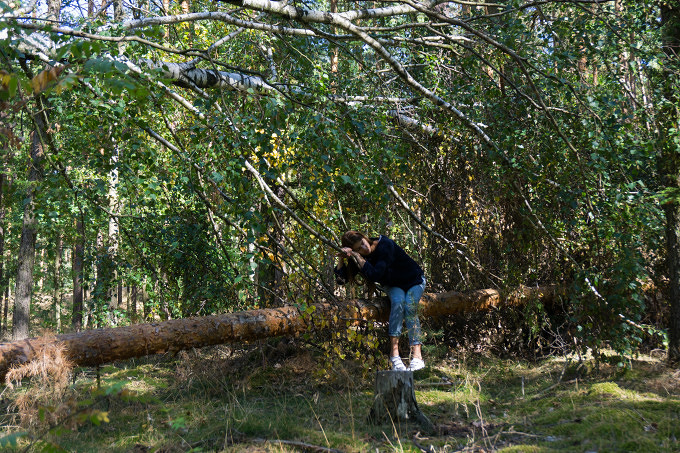 Raus aus der Stadt, rein in die Natur. Ich fahre mit der S-Bahn bis zum Wannsee, nehme den Bus und bitte den Fahrer mich an der Station mitten im Wald rauszulassen (hier braust er nämlich meistens einfach vorbei). Am Straßenrand steht schon eine kleine Gruppe, alle gut ausgestattet mit bequemen Schuhen, denn es soll ja bekanntlich tief in den Wald gehen. Es wird sich ausgelassen begrüßt, ein paar waren schon mehrmals dabei, sind sozusagen richtige Waldbade-Experten. Gemeinsam machen wir uns auf den Weg durch das Dickicht. Wir lassen die ausgetretenen Spazierpfade hinter uns und stapfen durch das Unterholz.