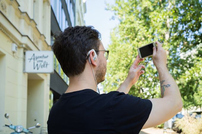 Für unsere Aufnahmen haben wir das Sennheiser AMBEO SMART HEADSET mit Technologie von Apogee verwendet, das uns dabei geholfen hat, die Klänge Berlins möglichst naturgetreu und in 3D-Qualität aufzuzeichnen. Das ist möglich, da die Mikrofone den Klang binaural, also genau so, wie ihn eure Ohren wahrnehmen, einfangen. Das Handling war dabei super einfach, denn durch die Lightning-Schnittstelle konnten wir das Headset ganz einfach an unser iPhone (oder iPad) anschließen und sofort losfilmen.