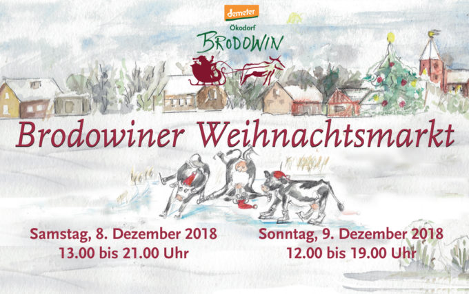 Brodowiner Weihnachtsmarkt | 8. & 9. Dezember 2018 | Ökodorf Brodowin, Dorfstraße 89, 16230 Chorin | Samstag 13–21 Uhr, Sonntag 12–19 Uhr | Tickets: 3 Euro | Mehr Infos