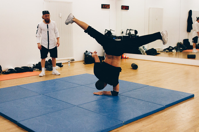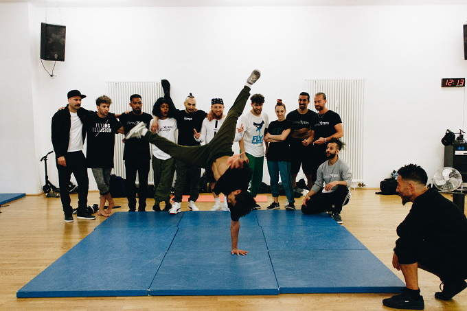 Ein paar Minuten zuschauen reicht aus, um zu verstehen, dass hier wirklich die Besten der Besten auf der Matte stehen. Viele der Tänzer sind Weltrekordhalter, Gewinner internationaler Battles, Erfinder von speziellen Moves und Tanzstilen. Lil Rock und Ukay, zwei der Crew-Mitglieder, haben auch die Choreographie zu den Shows "Flying Bach" und "Flying Illusion" mitgestaltet. Was nach Spaß aussieht, ist harte Arbeit. Das tägliche Training in den Räumen der Academy dauert mehrere Stunden, schließlich muss die Choreo der knapp eineinhalbstündigen Show perfekt sitzen.