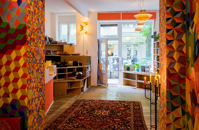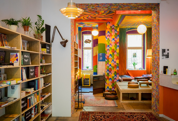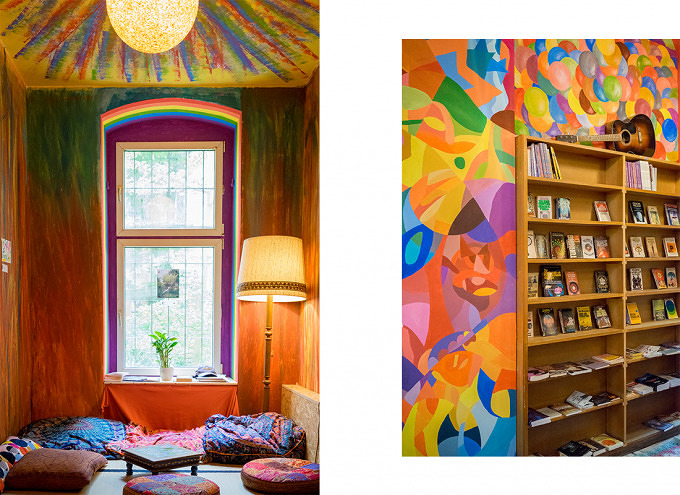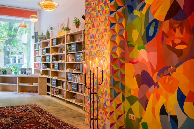 Genau deshalb findet ihr auch dieses und viele andere Bücher im psychedelischen Buchladen Kali, der im Februar 2018 in Friedrichshain eröffnet hat. In ihrem selbst gestalteten, bunten Wunderland verkaufen Norman und Vanessa Bücher über alles, was das Bewusstsein erweitert. Da findet sich die "Enzyklopädie der psychoaktiven Pflanzen" (das Standard-Werk, wie mir Vanessa freudig verrät) neben einem Buch über die Wirkung von Nachtschattengewächse, Bücher des 60er Jahre LSD-Gurus Timothy Leary neben Romanen wie "Die unendliche Geschichte" von Michael Ende, und eine Abhandlung über psychedelische Handlungselemente in Grimmschen Märchen neben einem Buch über Drogen im dritten Reich, das den süffisanten Namen "Nazis on Speed" trägt.