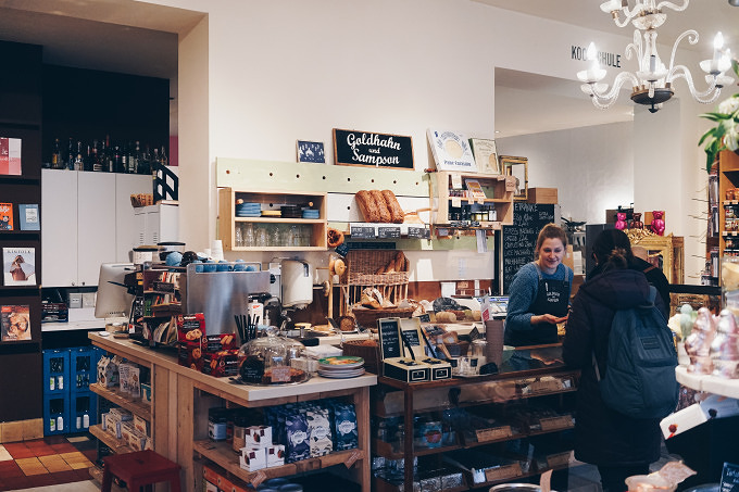 Feinkostläden gibt es viele in Berlin. Was mir am Goldhahn und Sampson allerdings am besten gefällt ist, dass hier jeder Mitarbeiter und auch Kunden das Sortiment des Ladens mit gestalten. Ihr habt in eurem Griechenland-Urlaub ein besonders leckeres Olivenöl gefunden, oder auf einer Reise durch Guatemala die beste Schokolade der Welt gegessen? Bringt einfach etwas davon mit, wenn es auch die Mitarbeiter von Goldhahn und Sampson überzeugt und es einigermaßen beschaffbar ist, könnte euer kulinarisches Urlaubsmitbringsel auch schon bald in den Regalen des Ladens zu finden sein. Daneben kann man hier die leckersten Backwaren aus verschiedenen Bäckereien der Umgebung futtern und – wer sich lieber selbst mal am Herd oder Ofen versuchen möchte – an verschiedenen Koch-Workshops teilnehmen.