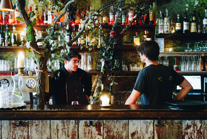Von den Wölfen geht es zum Schluss dann noch in den Dschungel, den die beiden Neuköllner Sebastian Schwendner und Martin Schuffenhauer vor einigen Jahren als Hommage an den legendären gleichnamigen Schöneberger Club eröffneten. Insgesamt drei Räume verwandeln sich mit jeder Menge Pflanzen, Lianen, Efeu, Dschungeltapete, Holz und Spiegeln zu einem gemütlichen und dunklen Dschungel, in dem alle nachtaktiven Tiere von der Wasserstelle – der Bar – angezogen werden. Es wird, eingehüllt in schummriges orangenes Licht, viel getrunken, gequatscht und geraucht – eure Klamotten könnt ihr danach direkt in die Waschmaschine hauen – und das ist genau das, was ich an Bars am liebsten habe. Auch wenn es in Neukölln wirklich genügend Bars gibt, ist der Dschungel mit seiner Aufmachung definitiv eine der besondereren Bars, die sich für den ein oder anderen Drink immer lohnt.