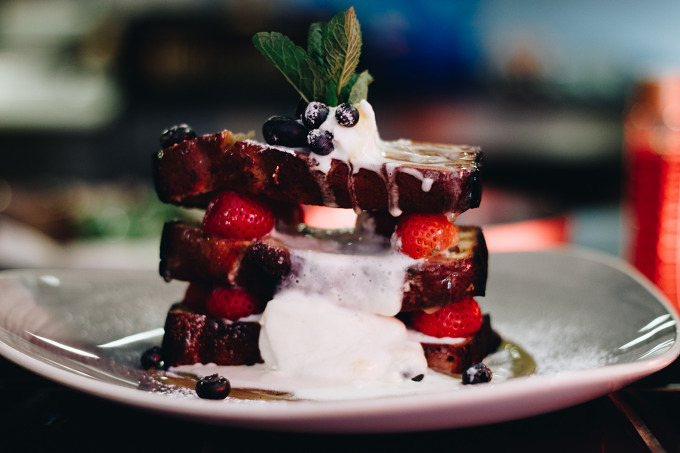 Das Bananenbrot-Sandwich mit Mascarpone und Erdbeeen, dass mich schon auf der Karte angelächelt hat, kommt mir während meines Besuch im Unser Café auch noch vor die Linse und erinnert mehr an einen Bananenbrot-Wackelturm mit fruchtigen Eckpfeilern. Und hätte ich nich diese verdammte Weizenunverträglichkeit, bei der mich nach dem Essen Bauchschmerzen plagen, dann hätte ich mich wahrscheinlich auch fleißig durch die Backwarenauslage probiert. Bei Blätterteig mit Zimt und Zucker, Mandelcreme- oder Schokoladenfüllung werde ich nämlich schnell schwach.