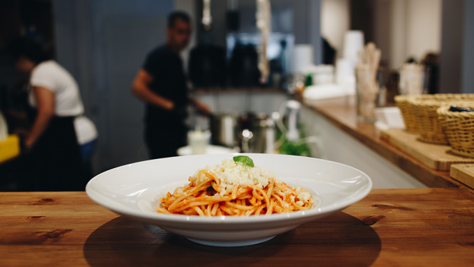 Große Fenster, viel Platz und der Duft von frischer Pasta – das sind die drei Dinge, die mir zum neueröffneten Emporium in der Reinhardtstraße einfallen. Wenige Meter vom Friedrichstadt-Palast entfernt bekommt ihr tagsüber belegte Bagels, süßes Gebäck, Porridge, und Kaffee von der Berliner Rösterei Zazza. Wer mittags etwas Warmes essen will, kann sich zwischen sechs verschiedenen Pastagerichten entscheiden: Arabiata, Pesto Vegano, Aglio e Olio, Carbonara oder Pomodoro Basilico. Der Inhaber steht hier selbst in der offenen Küche und kocht mit viel Liebe.