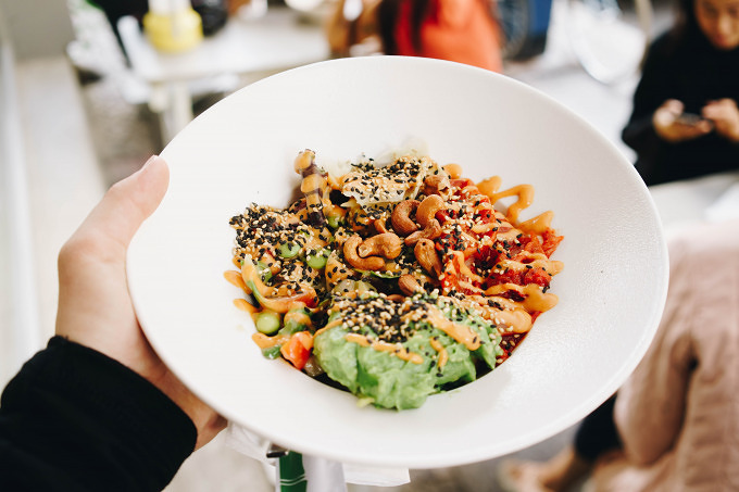 Surfer brachten das Gericht von Hawaii nach Los Angeles. Dort entstand schließlich die Form von Poke, die es nun auch im L.A. Poke zu futtern gibt: die "Californian Bowls". Diese basieren gemäß des Ursprungs von Poke zwar noch immer auf Fisch (im L.A. Poke gibt's aber auch Veggie-Varianten!), werden aber mit buntem Salat, Avocado, Kimchi, Ingwer, Nüssen, Sesam, diversem Gemüse und verschiedenen Saucen aufgepimpt. Das macht die Poke Bowls zur perfekten leichten Mahlzeit an warmen Sommertagen.