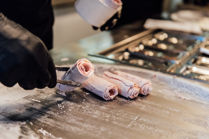 Thailändische Eisröllchen mit jeder Menge Extras bei Delabuu Ice Cream