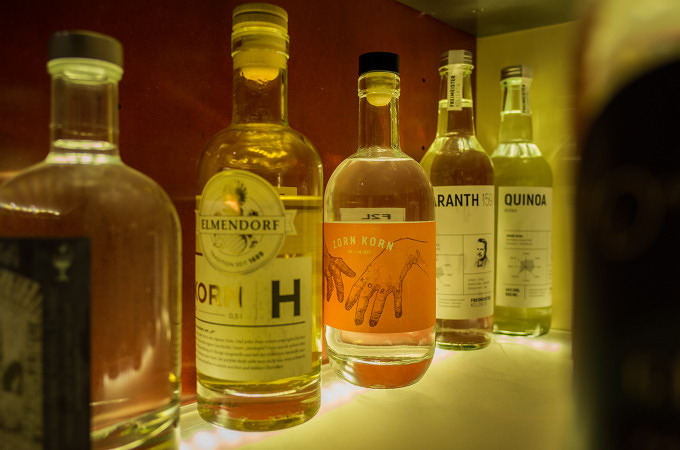 Um gerade unerfahrenen Trinkern den Einstieg zu erleichtern, haben Jon und Rik ausgewählte Flights zusammengestellt, die jeweils drei thematisch verwandet Spirituosen umfassen. Ich entscheide mich für den Bierbrand-Mix mit Spirituosen vornehmlich aus Mecklenburg-Vorpommern, die allesamt super schmecken und eine riesige Geschmacksvielfalt zeigen.